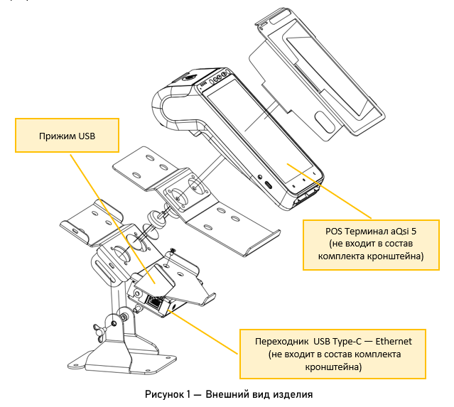 - Кронштейн POS терминала aQsi — 1 комплект.